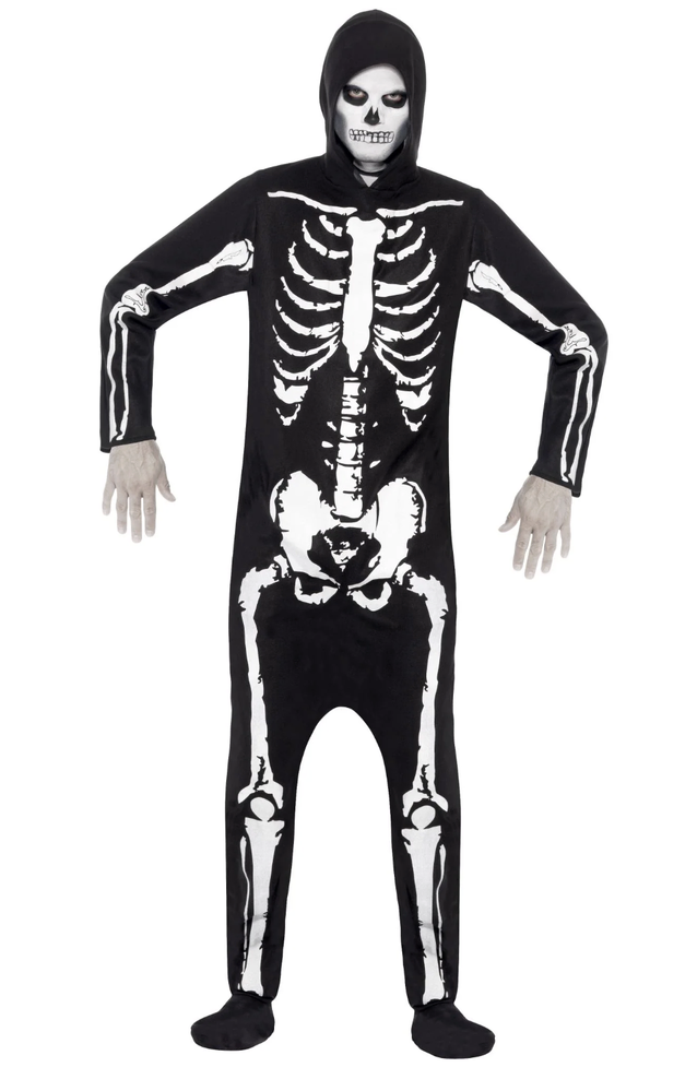 Make a spine-tingling entrance this Halloween in a stark black skeleton jumpsuit that reads from across the room. The one-piece hooded suit skims the body with bold white bones printed down the front and legs so you’ll be instantly recognisable at parties or spooky school events. Available for pickup in Perth — simple, classic and instantly effective.