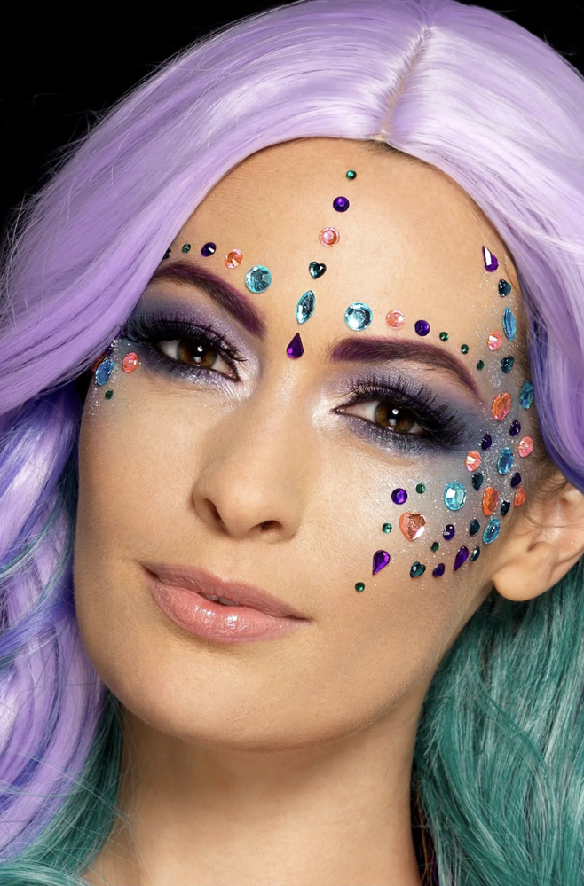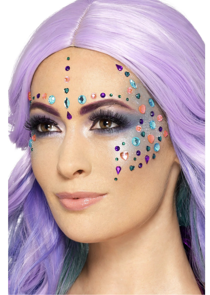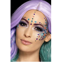 Bring festival-grade sparkle to your look with these Smiffys Pastel Jewel Face Gems. Pre-arranged on one ready-to-apply sheet, the self-adhesive gems create an instant mermaid or fairy-face effect that stands out under lights — ideal for festivals, parties or Halloween. One size fits most; simply peel and stick for quick glam that lasts through a night of photos and dancing.