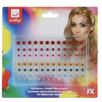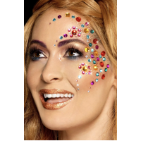 • Includes: Sheet of self‑adhesive rainbow face gems in assorted sizes and colours