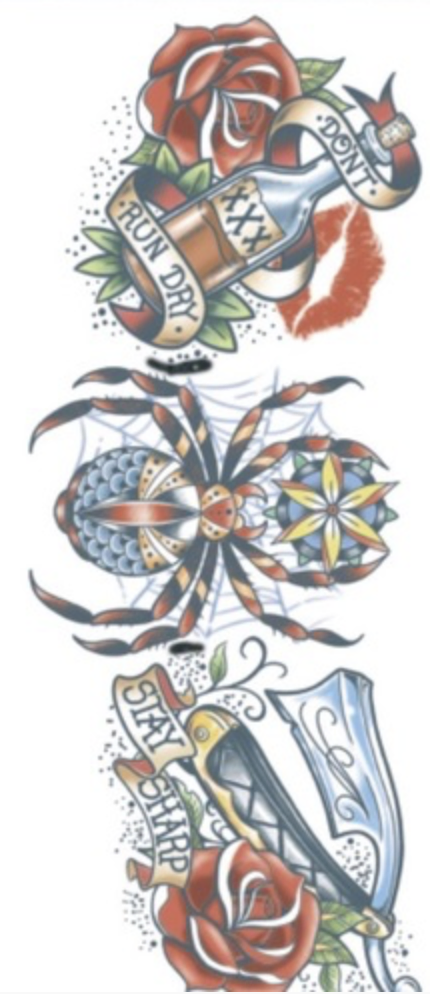 • Includes: One temporary neck transfer tattoo sheet (as pictured)