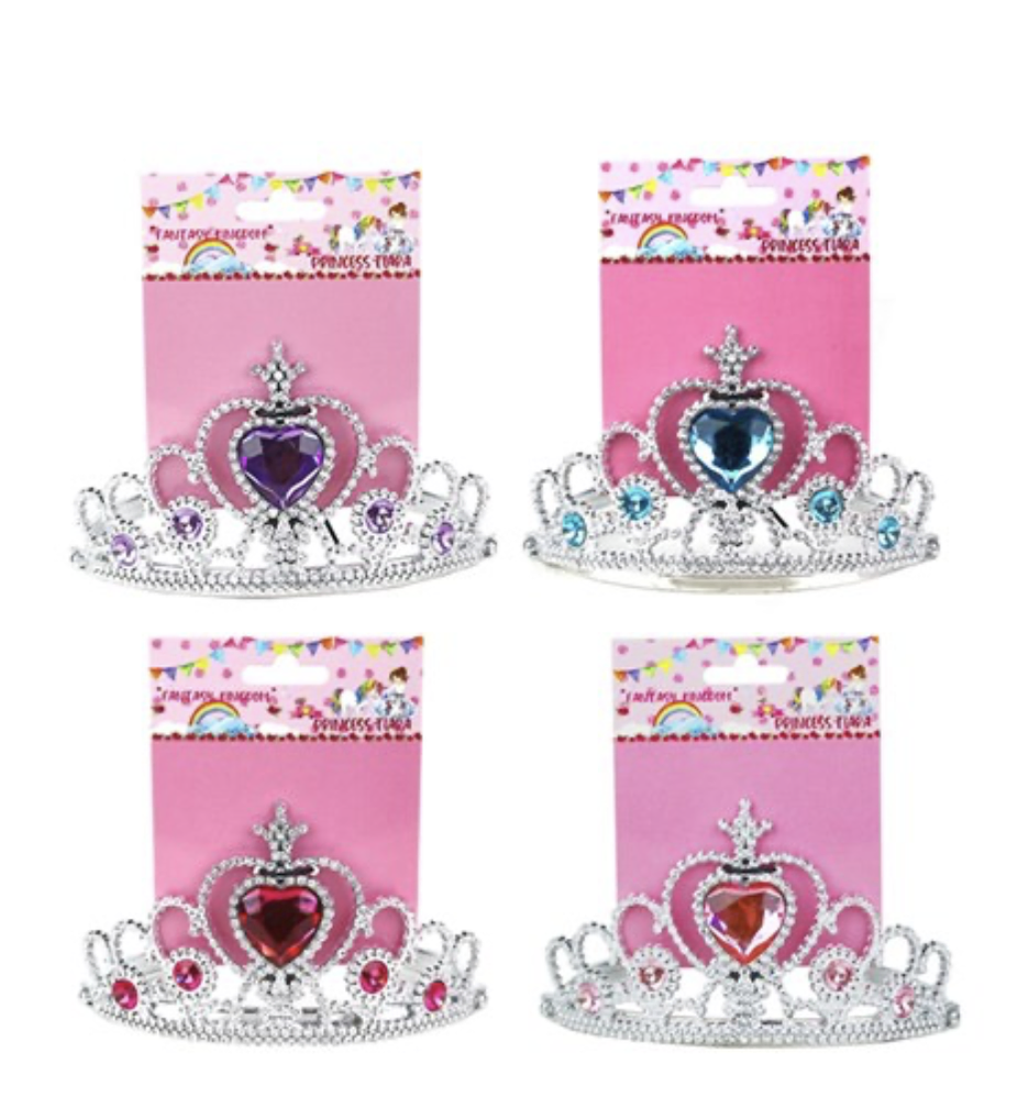 Give any little royal a crowning moment with this sparkling Princess Tiara — a silver‑tone crown set with a heart‑shaped centre gem and smaller accent jewels. One size fits most kids and it instantly lifts Book Week costumes, birthday parties or fancy dress looks. Lightweight and easy to wear, it adds instant sparkle for dress‑ups or Halloween fun.