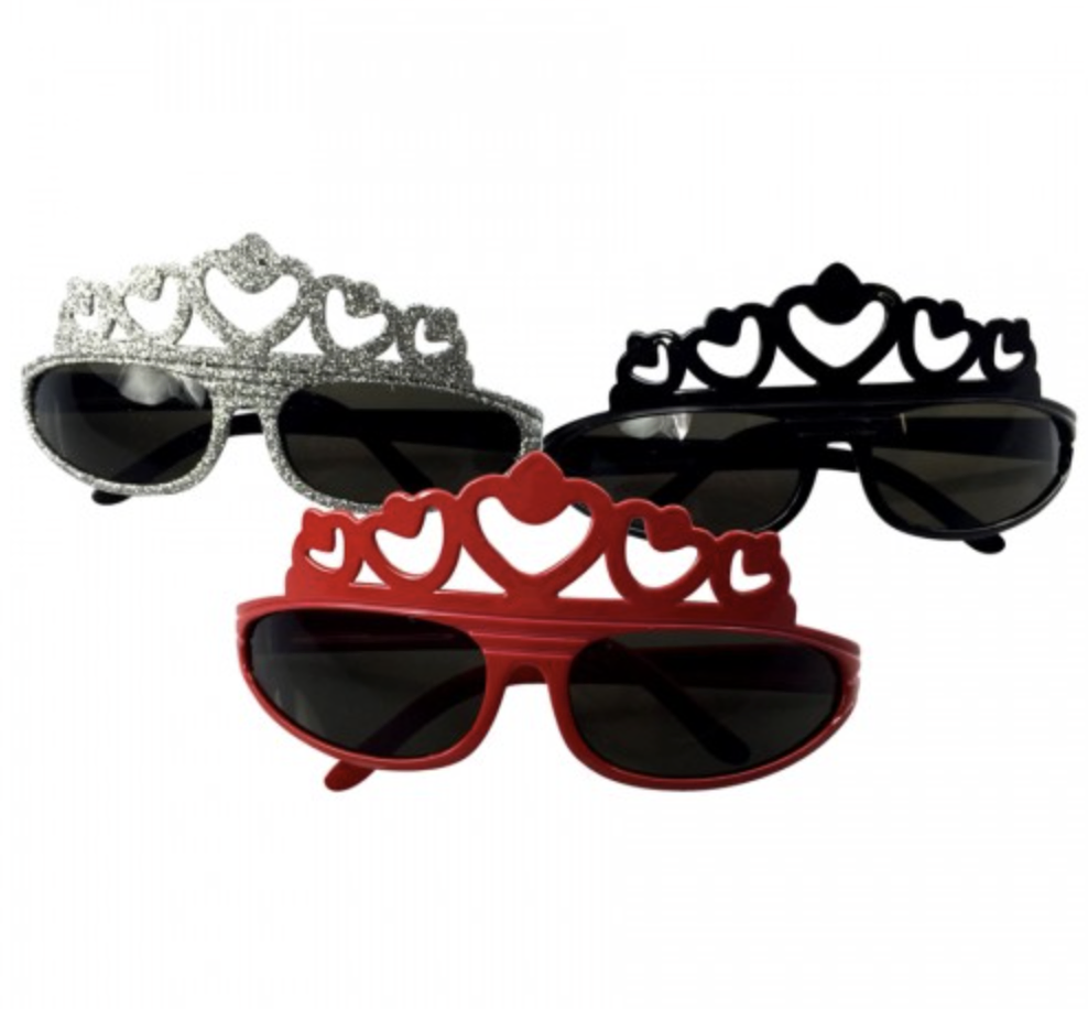Add instant sparkle to hens' nights, birthday parties and photo booths with these Tiara Glasses. The one size novelty shades crown you with a heart‑topped tiara while dark tinted lenses add a cheeky, mysterious vibe. Lightweight plastic construction keeps them comfortable for most adults and teens — a single pair that makes a playful party statement.