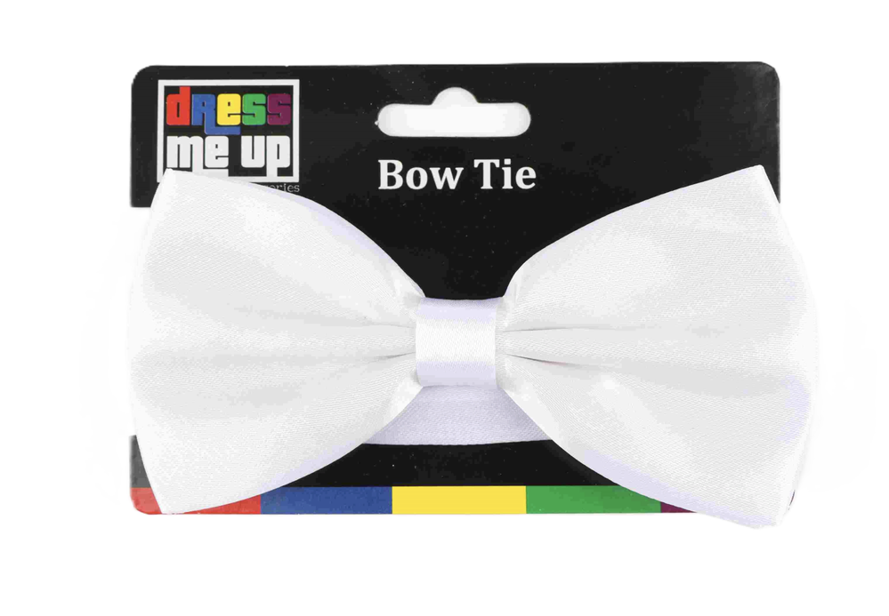 A crisp white pre‑tied bow tie with a satin-look finish that lifts any formal outfit or costume. One size with an adjustable neck strap for a neat, comfortable fit — perfect for weddings, black‑tie events and parties or as the finishing touch to waiter and period costumes. Available for pickup in Perth.