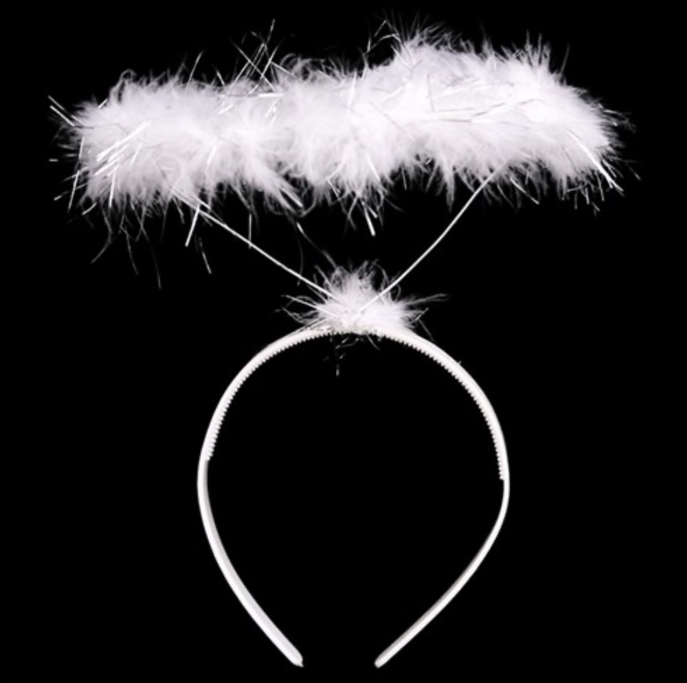Bring a touch of heavenly charm to nativity plays, Christmas pageants or Halloween with this white halo headband. Lightweight and one size fits most kids, it perches on spring wires so the fluffy halo appears to float above the head. The soft marabou-style feathers and sparkling tinsel trim give a bright, angelic finish — pickup in Perth available.