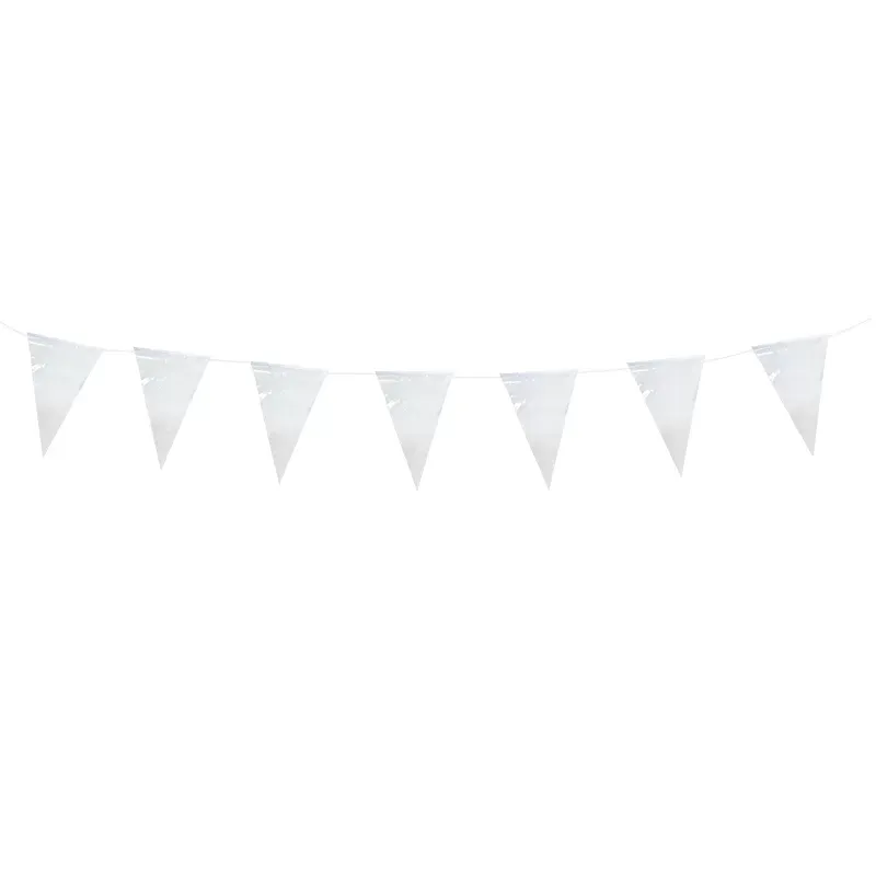 Complete your party decor with our White Pennant Banner. Featuring 12 triangular pennants, this polyester banner is perfect for weddings, birthdays, and other celebrations.